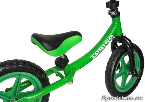 12 дюймові легкі пластикові колеса беговела з шинами з пінорезини (EVA матеріал) не треба підкачувати і вони не бояться ніяких проколів.
