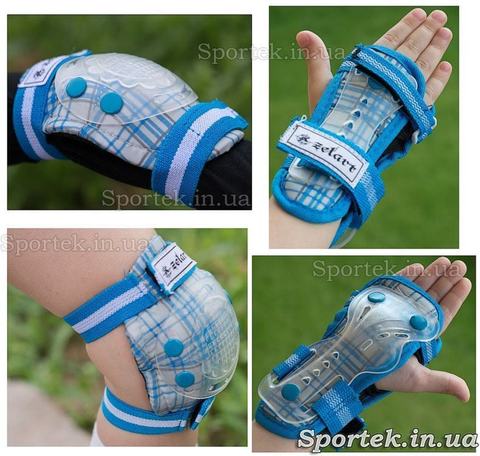 Біло-зелена захисна екіпіровка Zelard (Зелард) для катання дітей і підлітків на велосипедах, мотоциклах, роликах, скейтбордах, лижах і інших ігор і розваг у яких можливі падіння і травми.