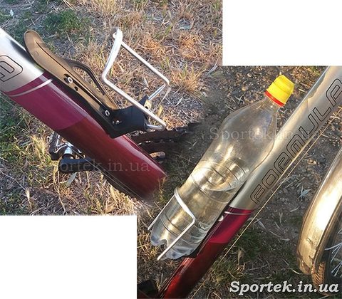 Пляшка коштує на міцній основі флягодержателя, а не висить на невеликому виступі, як в інших моделях.