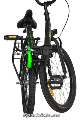 Важная особенность этого велосипеда – складная рама, что позволяет экономить место при перевозке и хранении его в квартире, на балконе или зимой у папы в гараже. Сложить и разложить велосипед можно буквально за несколько минут, простой замок позволяет это сделать в три движения.