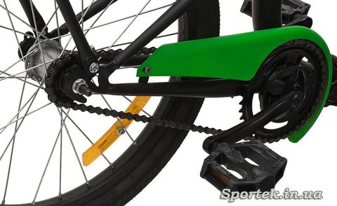 Металлическая защита цепи оберегает от попадания штанов между цепью и звездочкой, а саму цепь от лишней грязи.
