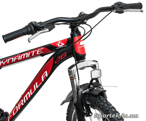 Горный мужской велосипед Formula Dynamite 2016 (хардтейл) с колесами 26 дюймов для езды по любым дорогам с амортизационной вилкой, эргономичным седлом, подставкой и светоотражателями.