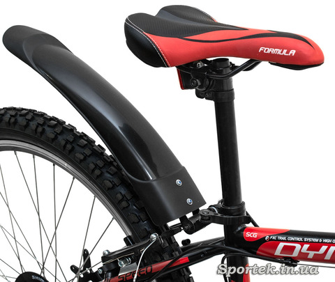 Особенность «Формула Динамит» прочные и быстро съемные пластиковые крылья защищающие велосипедиста от дорожной грязи.