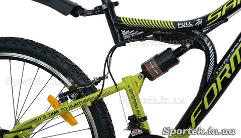 Задняя подвеска, совместно со стальной амортизационной вилкой, гасят любую неровность дороги. На этом байке одинаково удобно ехать по горной или лесной тропинке, полю и просёлочной дороге, не говоря уже об асфальте.