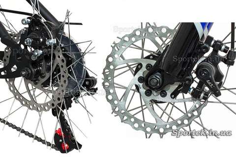 Передній і задній дискові гальма дадуть впевненість при управлінні в будь-яких погодних умовах і ситуаціях, не вимагають дорогих запасних частин і легко налаштовуються.
