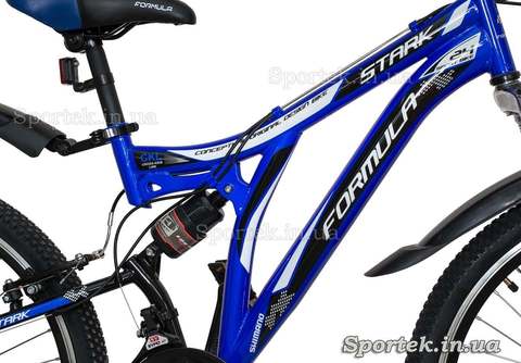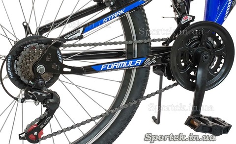 Установленные на «Формула Старк» крылья защищают ребенка от дорожной грязи, светоотражатели делают езду в ночное и вечернее время безопасной, а подножка решает проблему - как поставить велосипед. Прочные ребристые широкие пластиковые педали на подшипниках с дополнительными светоотражателями удобны и прочно контактируют с подошвой обуви.