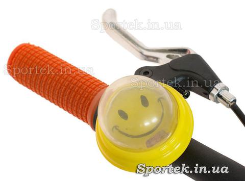 Изюминка велосипеда - простой, но оригинальный звонок в виде смайлика и прикольным звуком.