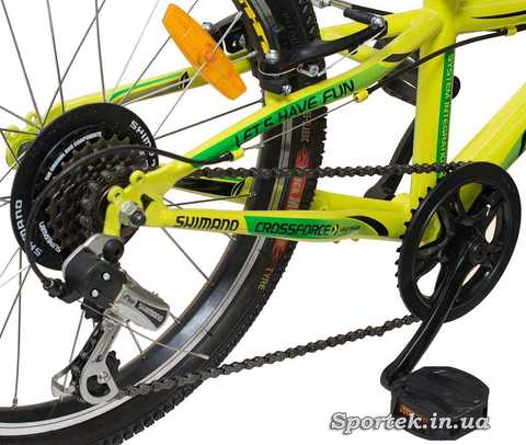 Имеет 6 скоростей, что для ребенка вполне достаточно, и даст возможность управлять нагрузкой при езде по ровной поверхности, а так же на любых подъемах и спусках. За управление скоростями отвечают надежные и современные комплектующие Shimano.