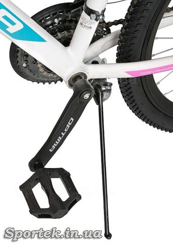 Встановлені на«Оптимабайк Альпіна » світловідбивачі роблять їзду в нічний і вечірній час безпечною, а підніжка вирішує проблему - як поставити велосипед не кидаючи його на асфальті або землі.