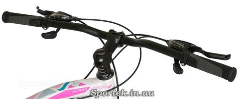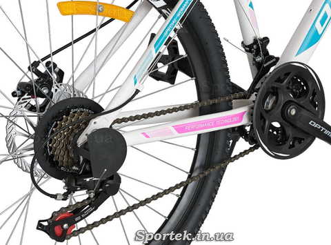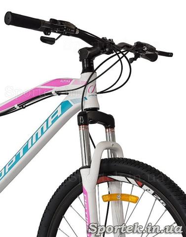 Гірський жіночий велосипед Optimabikes Alpina DD з легкої алюмінієвою рамою, дисковими гальмами, колесами 26 дюймів і амортизаційної вилкою.