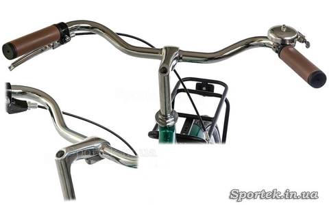 Широкое пружинное регулируемое сидение компенсирует неровности дороги, а на руле классической геометрии установлены оригинальные ручки и звонок старой проверенной конструкции с характерным звуком, знакомым многими поколениями велосипедистов еще с советских времен.