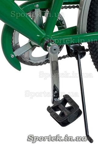 Установленные светоотражатели делают езду в вечернее и ночное время безопасной, а подножка за кареткой решает проблему - как поставить велосипед. Не нужно искать стену, дерево или столб, что, согласитесь, очень удобно особенно за городом или в поле.