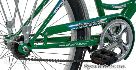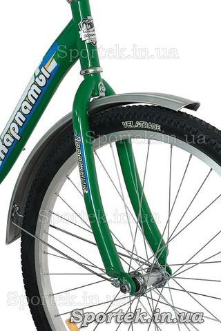 Отличительные особенности «Дорожник Карпаты»: звонок в цвет велосипеда с характерным звуком, и оригинальный задний катафот на полноценном металлическом крыле, хорошо защищающем от дорожной грязи.