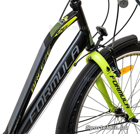 Установленные на «Формула Бриз» крылья защищают велосипедиста от дорожной грязи, а на стальном багажнике удобно перевозить грузы или установить детское кресло. Установленные согласно правил дорожного движения, светоотражатели делают езду в ночное и вечернее время безопасной, а подножка решает проблему - как поставить велосипед.