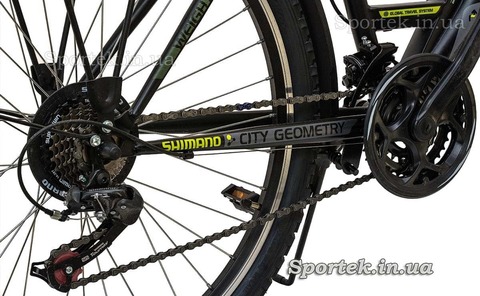 21 передача и качественные японские переключатели передач Shimano дают возможность рационально использовать силы для различных участков дороги, на подъемах и спусках.