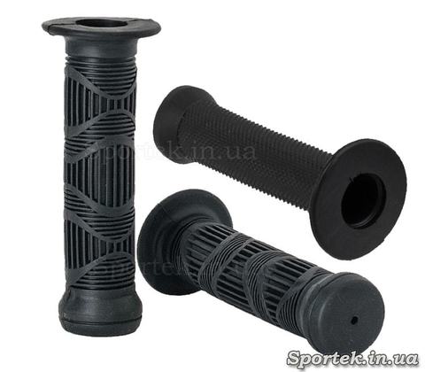 Якісне гумове покриття зі спеціальним малюнком забезпечує хороший контакт з голою рукою або рукою в рукавичці. На внутрішніх краях упор для кисті загальним діаметром 50 мм. З торців ризиновое потовщення 35 мм. Гріпси закривають трубу керма з торця.