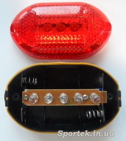 Має 5 світлодіодів розташованих горизонтально в один ряд і 7 режимів світіння і моргання: