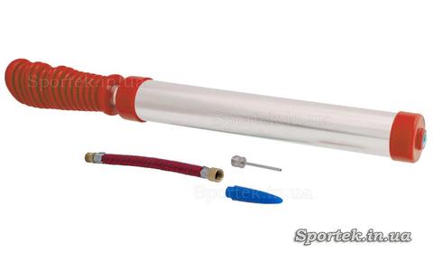Насос комплектуется шлангом, иглой для накачки мячей и пластиковой насадкой (длина 35 мм, диаметр 9 мм) для подкачки надувных изделий.