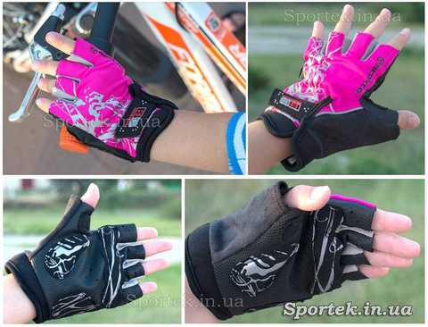 Перчатки детские велосипедные без пальцев (малиновые, размер M) с защитой ладони и кисти.