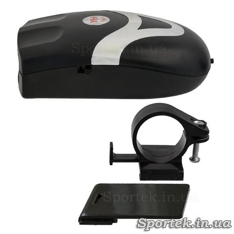Кріпиться на кермі велосипеда за допомогою пластикового хомута на болті.