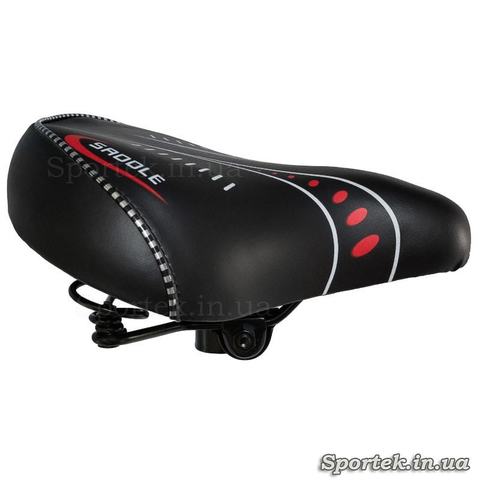 Верхня частина виконана з щільного зносостійкого шкірозамінника. Сидіння має анатомічну форму і розроблено таким чином, щоб не створювати дискомфорту під час крутіння педалей.