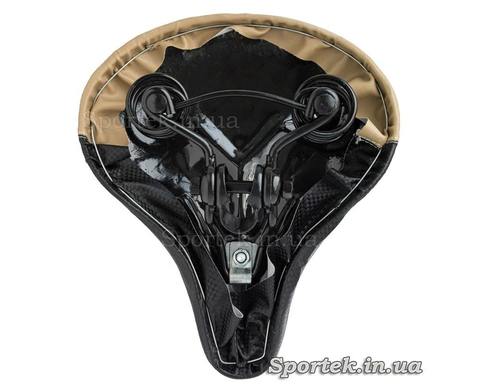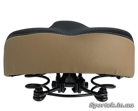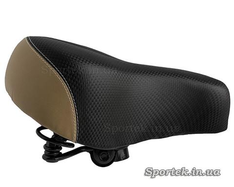 Верхняя часть выполнена из плотного износостойкого кожзаменителя. Сидение имеет анатомическую форму и разработано таким образом, чтобы не создавать дискомфорта во время кручения педалей.
