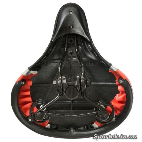 Верхня частина виконана з щільного зносостійкого шкірозамінника. Сидіння має анатомічну форму і розроблено таким чином, щоб не створювати дискомфорту під час крутіння педалей.