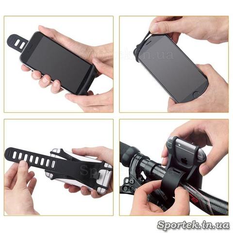 Легке і надійне силіконове кріплення для смартфонів на кермо велосипеда міцно утримує Ваш телефон під час велосипедної прогулянки.
