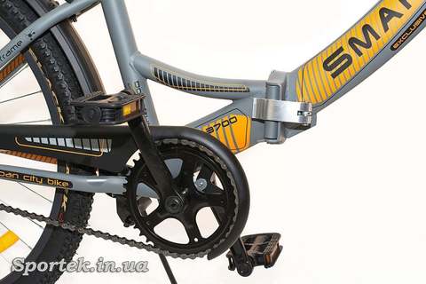Важлива особливість цієї моделі – складана рама, що дозволяє економити місце при перевезенні в машині або громадському транспорті, зберіганні між покатушками в квартирі, на балконі або взимку у тата в гаражі. Простий замок дозволяє скласти і розкласти велосипед буквально за пару хвилин.