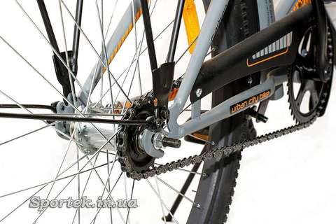 металевий захист ланцюга запобігає попаданню в неї штанів і спідниць, а міцний задній багажник дозволяє перевозити вантажі і навіть покатати друзів.