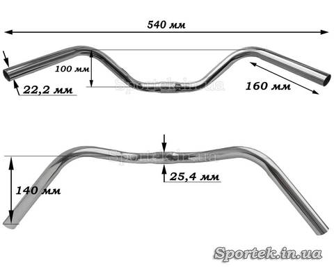 Высота подъема концов руля относительно выноса в вертикальной плоскости: 100 мм