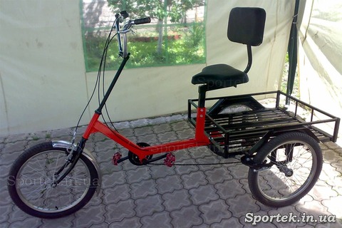 У цього вантажного триколісного велосипеда низька рама, так само зручна для посадки літнім і людям з великою вагою.