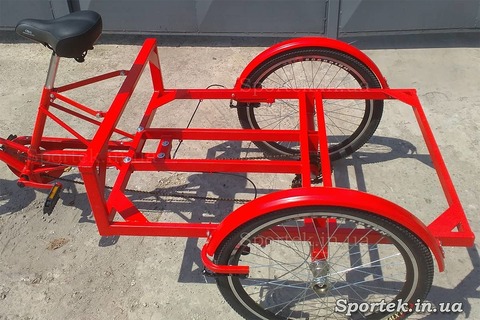 У этого грузового трехколесного велосипеда низкая и крепкая стальная рама и классическое велосипедное седло для городских велосипедов - широкое, мягкое и удобное при спокойных поездках.