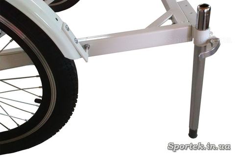 Заднее колесо диаметром 24 дюйма, а два передних - по 20 дюймов. Передние колеса на двойных усиленных алюминиевых ободах с втулками на промышленных подшипниках позволяют велосипеду выдерживать нагрузку до 200 кг, а широкие покрышки (1,95-2,25”) обеспечивают мягкость поездки, управляемость и хорошее сцепление с поверхностью дороги. На велосипеде установлены усиленные оси не менее 20 мм.