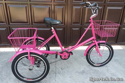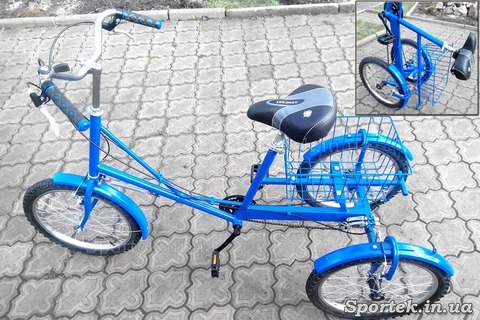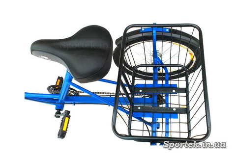 В задній кошику можна перевозити вантажі до 25 кг. За бажанням покупця можна встановити додатково звичайну передню кошик над переднім колесом.