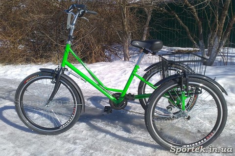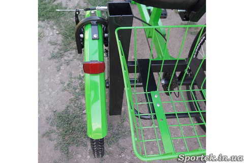 В задній кошику можна перевозити вантажі до 25 кг. За бажанням замовника можна встановити додатково звичайну передню кошик над переднім колесом.