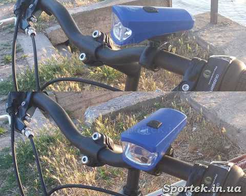 Кріпиться на кермі велосипеда на спеціальній підставці з поворотним механізмом.