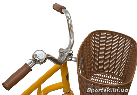 Отличительные особенности этой модели – стильные шитые ручки на руле, вместительная корзина на переднем багажнике и звонок старой надежной конструкции с характерным звуком, знакомым многими поколениями велосипедистов еще с советских времен.