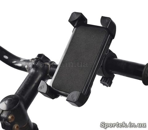 При помощи специального зажима держатель крепится к рулю велосипеда, мопеда, коляски и т.д диаметром от 22 мм до 35 мм.