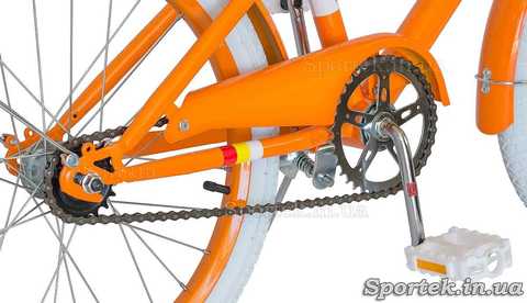 Металевий захист на ланцюга вбереже одяг від попадання під ланцюг, а її саму від зайвого забруднення.