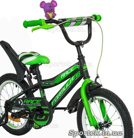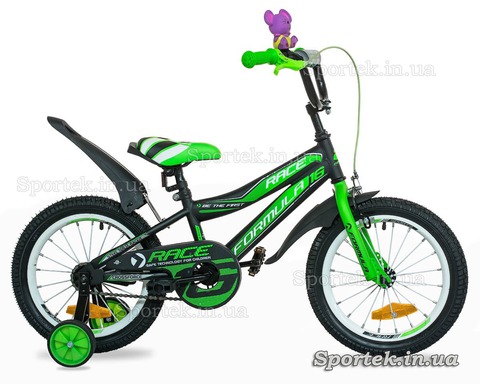 Велосипед Formula Race (Формула Райс) для дітей 3 - 5 - 7 років і зростанням від 95 до 105 см, з 16-дюймовими колесами і додатковими гумовими бічними колесами.
