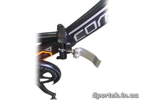 Важлива особливість цієї моделі – складна рама, що дозволяє економити місце при перевезенні в машині або громадському транспорті, зберіганні між покатушками в квартирі, на балконі або взимку в гаражі. Простий замок дозволяє скласти і розкласти велосипед буквально за пару хвилин.