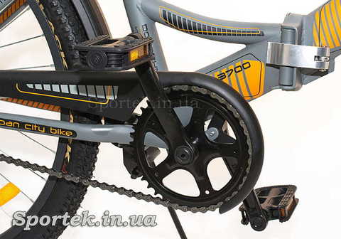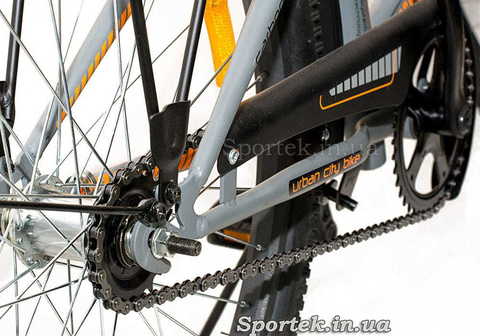 Металевий захист ланцюги запобігає потраплянню в неї штанів і спідниць, а міцний задній багажник дозволяє перевозити вантажі.