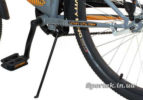 Підніжка, встановлена за кареткою, дозволяє швидко і просто поставити велосипед, а не класти його постійно на землю.