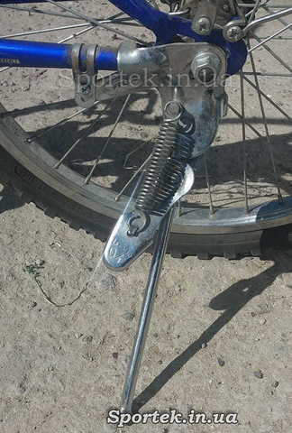 На конце стойки удобная "пяточка" для надёжной фиксации велосипеда на поверхности.