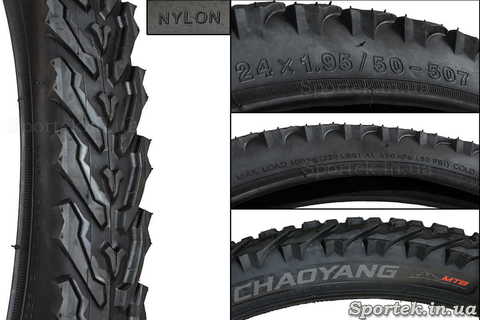 Велосипедна покришка китайського виробника ChaoYang (H-5110) для 24 дюймових коліс підліткових велосипедів.