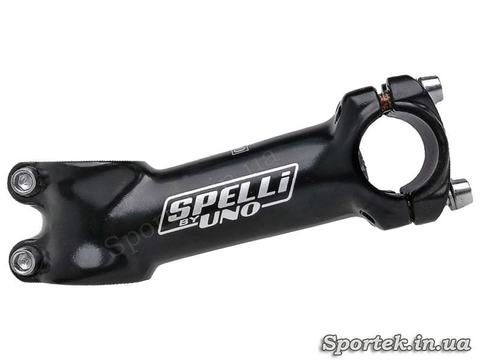 Черный алюминиевый вынос руля Spelli Uno (90 мм, угол 7, диаметр руля 31,8) на безрезьбовую рулевую колонку.