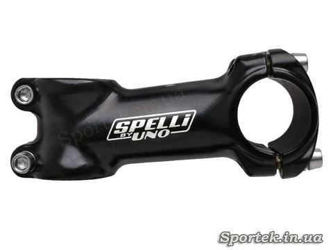 Черный алюминиевый вынос руля Spelli Uno (90 мм, угол 7, диаметр руля 31,8) на безрезьбовую рулевую колонку.